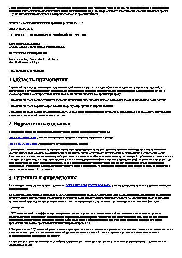 ГОСТ Р 54097-2010: Ресурсосбережение. Наилучшие доступные технологии. Методология идентификации