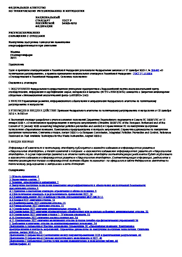 Наша цель состоит в том, чтобы предоставить вам быстрый доступ к содержанию документа Ресурсосбережение. Обращение с отходами. Наилучшие доступные технологии повышения энергоэффективности при сжигании.