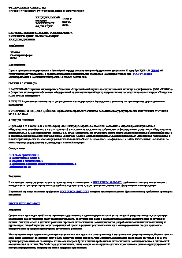Наша цель состоит в том, чтобы предоставить вам быстрый доступ к содержанию документа Системы экологического менеджмента в организациях, выпускающих нанопродукцию. Требования.