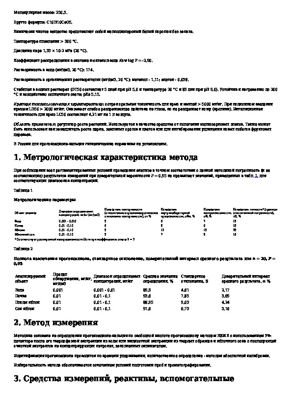 Определение остаточных количеств прогексадиона-кальция в воде, почве, плодах и соке яблок методом высокоэффективной жидкостной х