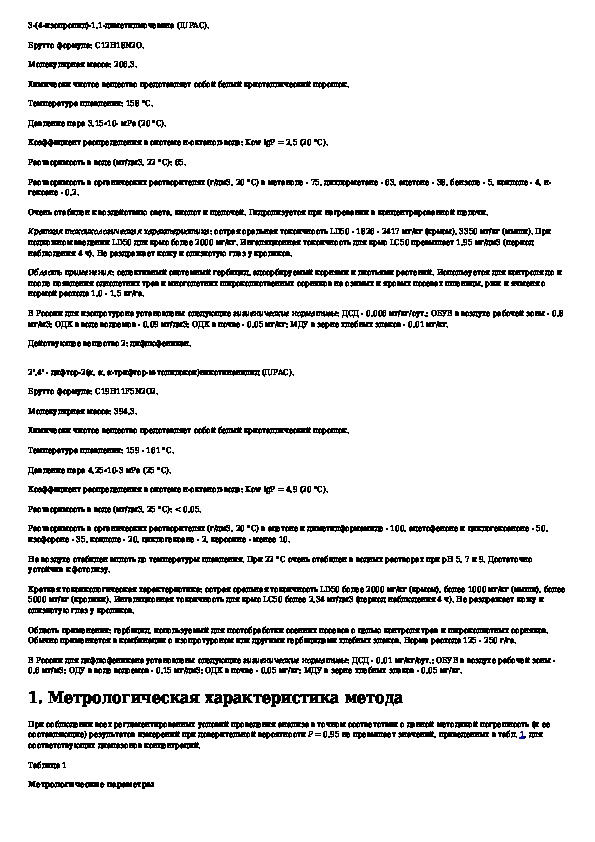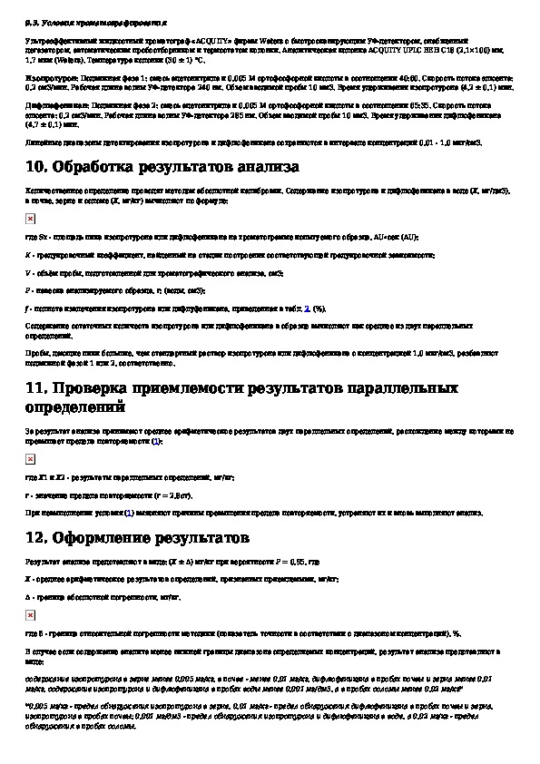 Определение остаточных количеств изопротурона и дифлюфеникана в воде, почве, зерне и соломе зерновых культур методом высокоэффек