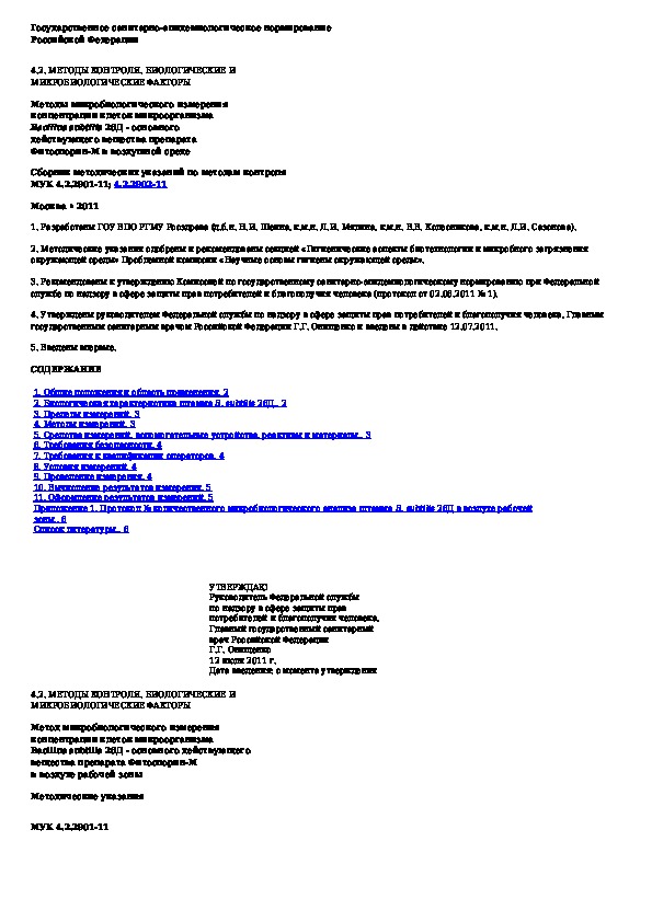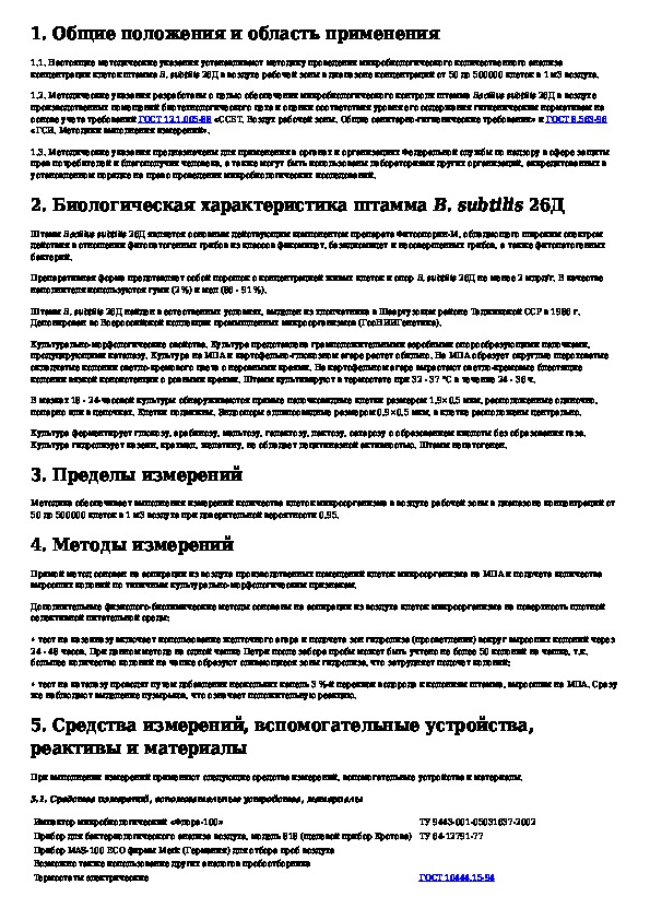 МУК 4.2.2901-11: Метод микробиологического измерения концентрации клеток микроорганизма Bacillus subtilis 26Д - основного действующего вещества препарата