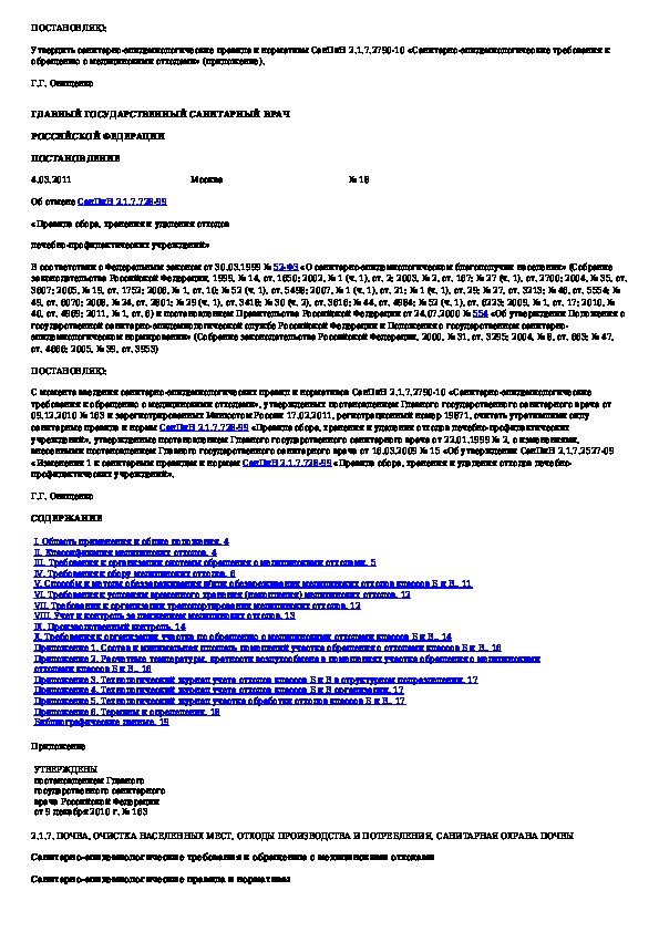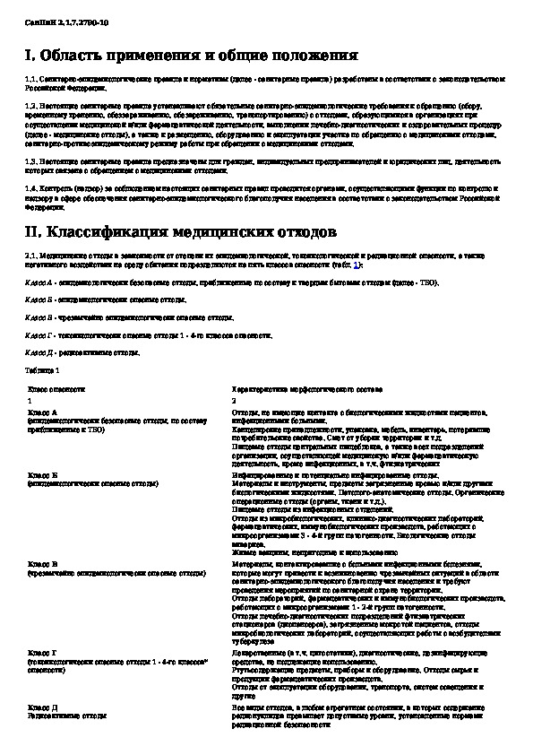 СанПиН 2.1.7.2790-10: Санитарно-эпидемиологические требования к обращению с медицинскими отходами