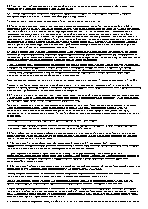Санитарно-эпидемиологические требования к обращению с медицинскими отходами