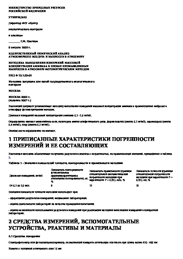 Наша цель состоит в том, чтобы предоставить вам быстрый доступ к содержанию документа Количественный химический анализ атмосферного воздуха и выбросов в атмосферу. Методика измерений массовой концентрации аммиака .