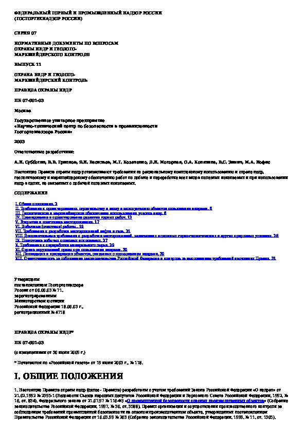 Наша цель состоит в том, чтобы предоставить вам быстрый доступ к содержанию документа Правила охраны недр.