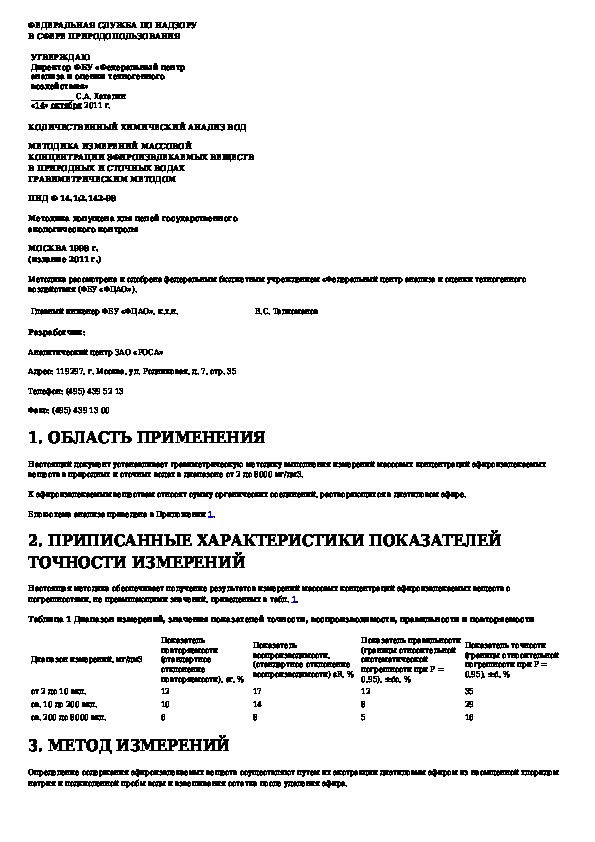 Наша цель состоит в том, чтобы предоставить вам быстрый доступ к содержанию документа Количественный химический анализ вод. Методика выполнения измерений массовой концентрации эфироизвлекаемых веществ в природных .
