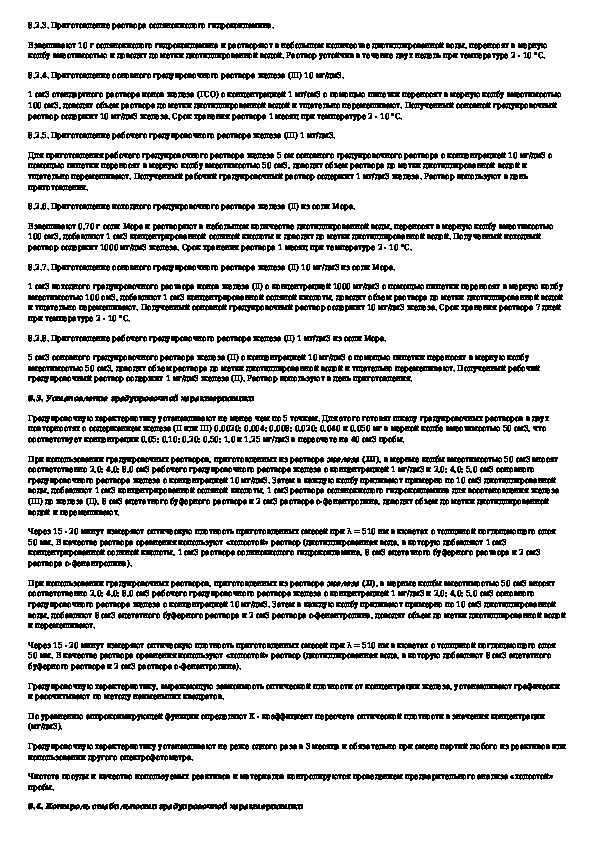 Наша цель состоит в том, чтобы предоставить вам быстрый доступ к содержанию документа Количественный химический анализ вод. Методика выполнения измерений массовой концентрации железа (II) в питьевых, природных и сточ.