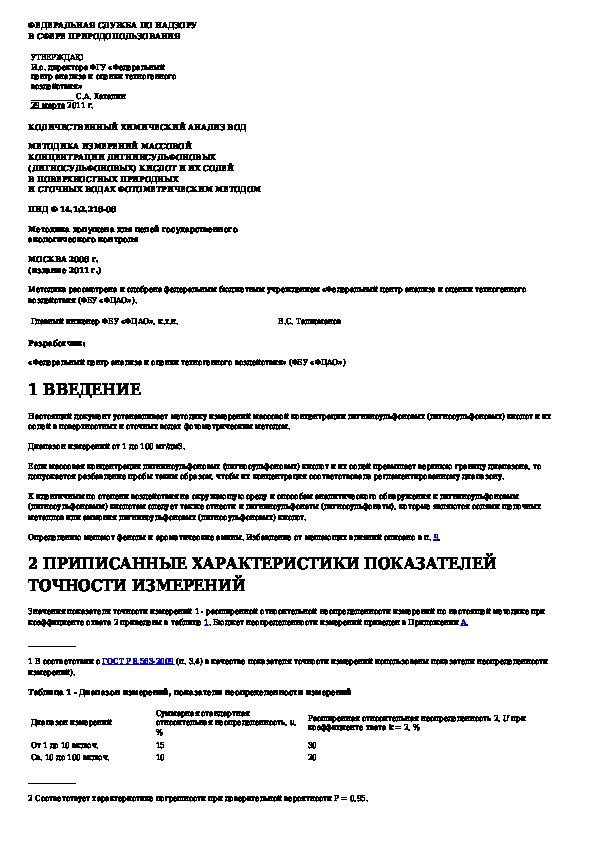 Наша цель состоит в том, чтобы предоставить вам быстрый доступ к содержанию документа Количественный химический анализ вод. Методика измерений массовой концентрации лигнинсульфоновых (лигносульфоновых) кислот и их .