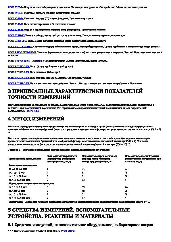 Наша цель состоит в том, чтобы предоставить вам быстрый доступ к содержанию документа Количественный химический анализ вод. Методика выполнения измерений массовых концентраций взвешенных веществ и прокаленных взве.