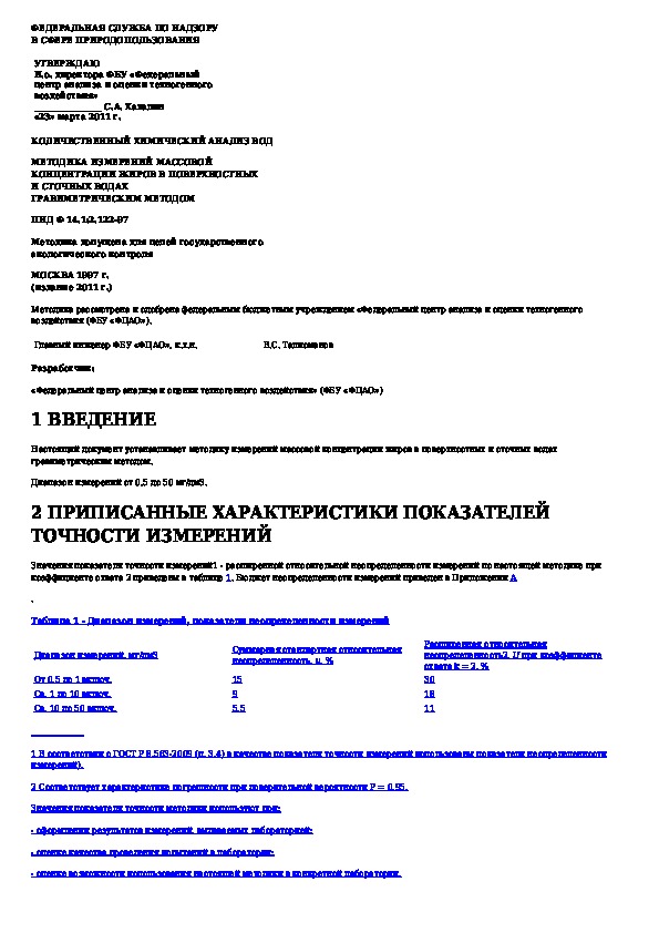 Наша цель состоит в том, чтобы предоставить вам быстрый доступ к содержанию документа Количественный химический анализ вод. Методика измерений массовой концентрации жиров в поверхностных и сточных водах гравиметри.