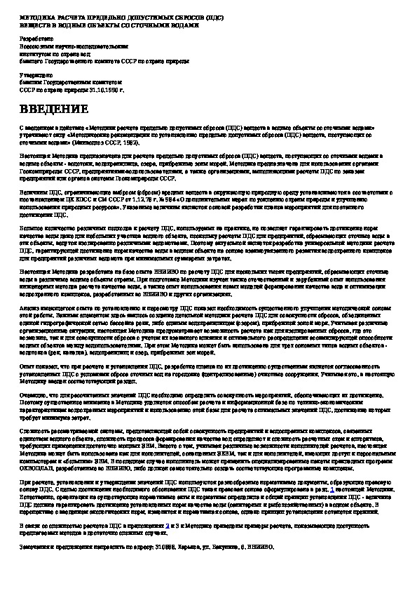 Наша цель состоит в том, чтобы предоставить вам быстрый доступ к содержанию документа Методика расчета предельно допустимых сбросов (ПДС) веществ в водные объекты со сточными водами.