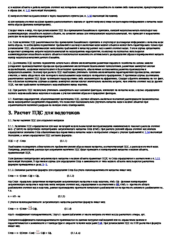 Методика расчета предельно допустимых сбросов (ПДС) веществ в водные объекты со сточными водами
