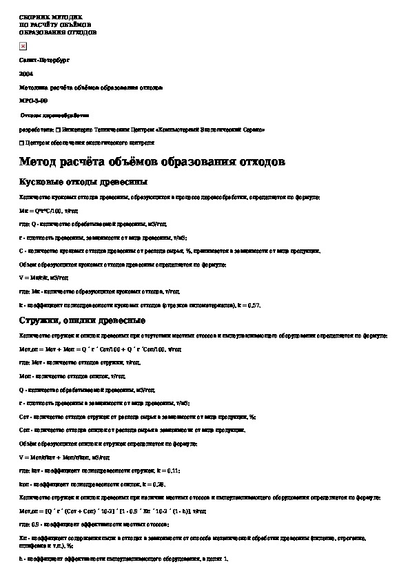 • Просмотр в полноэкранном режиме - легко просмотреть документ Методика расчета объемов образования отходов. Отходы деревообработки (без загрузки его на свой компьютер). Вы можете использовать режим полноэкранного просмотра, используйте кнопку «Открыть в Pdf-viewer».