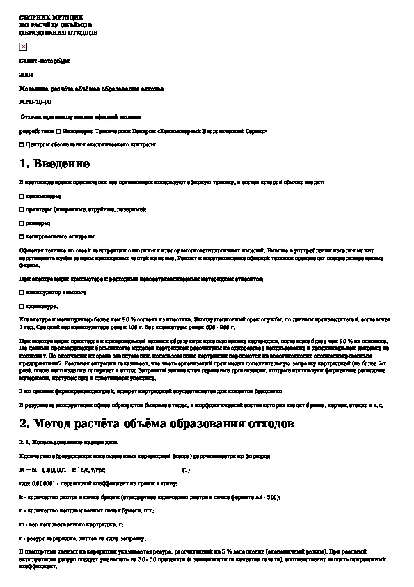 Наша цель состоит в том, чтобы предоставить вам быстрый доступ к содержанию документа Методика расчета объемов образования отходов. Отходы при эксплуатации офисной техники.
