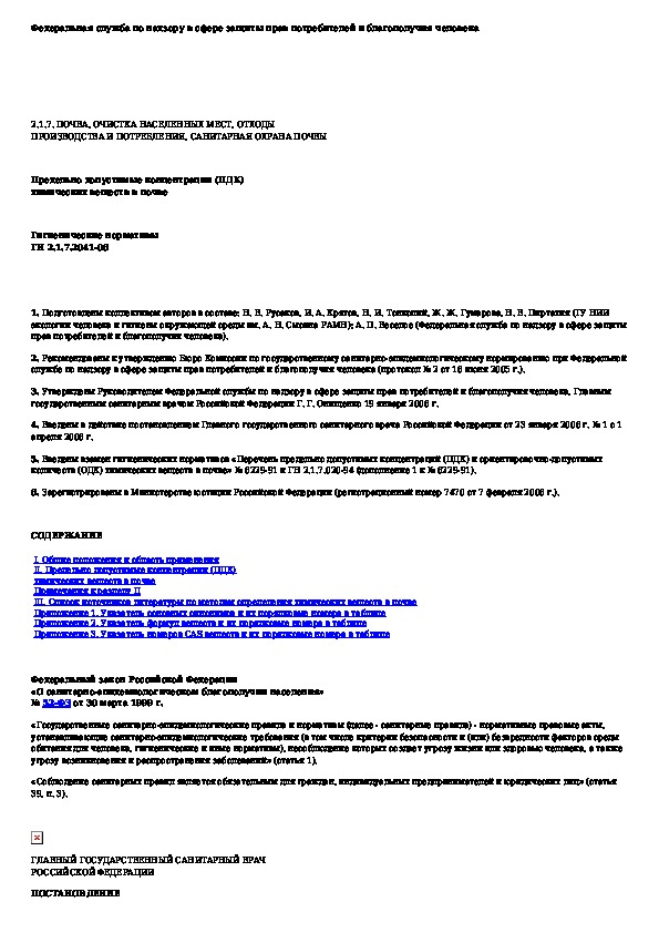 ГН 2.1.7.2041-06: Предельно допустимые концентрации (ПДК) химических веществ в почве