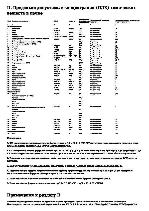 Предельно допустимые концентрации (ПДК) химических веществ в почве