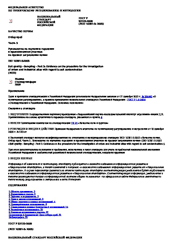 ГОСТ Р 53123-2008: Качество почвы. Отбор проб. Часть 5. Руководство по изучению городских и промышленных участков на предмет загрязнения почвы