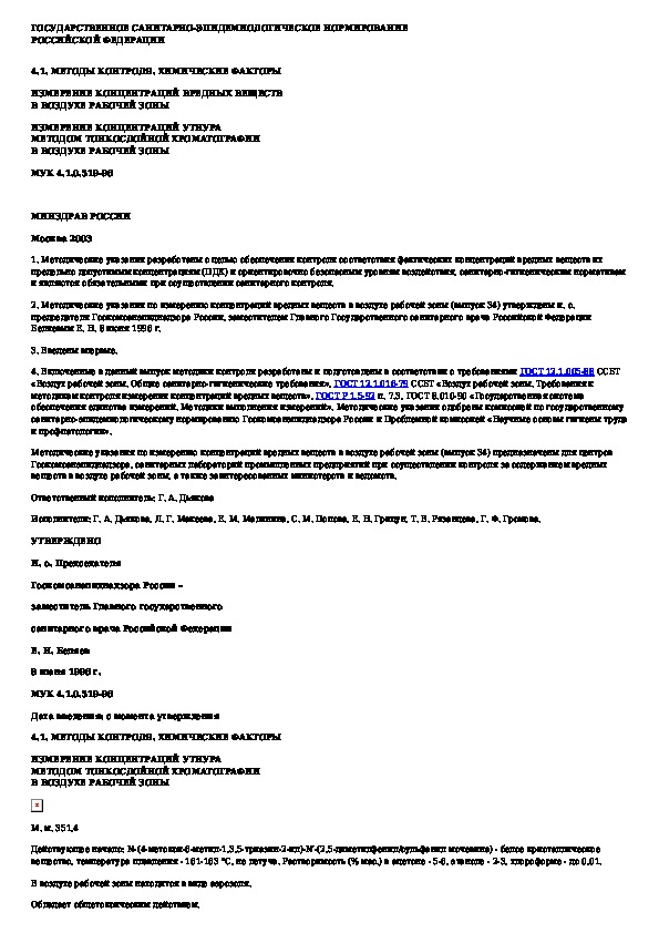 МУК 4.1.0.519-96: Измерение концентраций утнура методом тонкослойной хроматографии в воздухе рабочей зоны