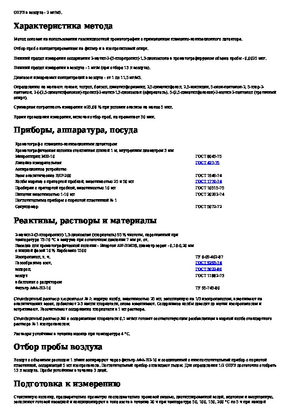 МУК 4.1.0.505-96: Газохроматографическое измерение концентраций 2-метил-2-(3-хлорпропил)-1,3-диоксалана в воздухе рабочей зоны