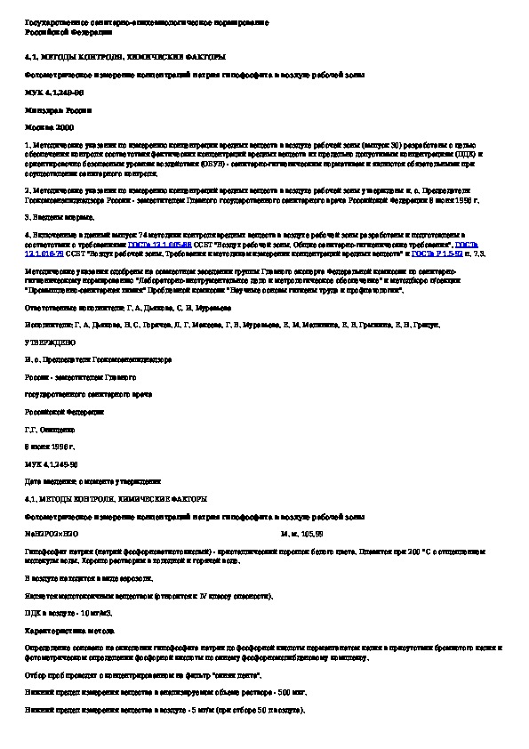 Наша цель состоит в том, чтобы предоставить вам быстрый доступ к содержанию документа Фотометрическое измерение концентраций натрия гипофосфита в воздухе рабочей зоны.