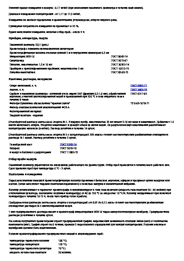 МУК 4.1.255-96: Газохроматографическое измерение концентраций метилового спирта с применением для отбора пассивных дозиметров в воздухе рабоче