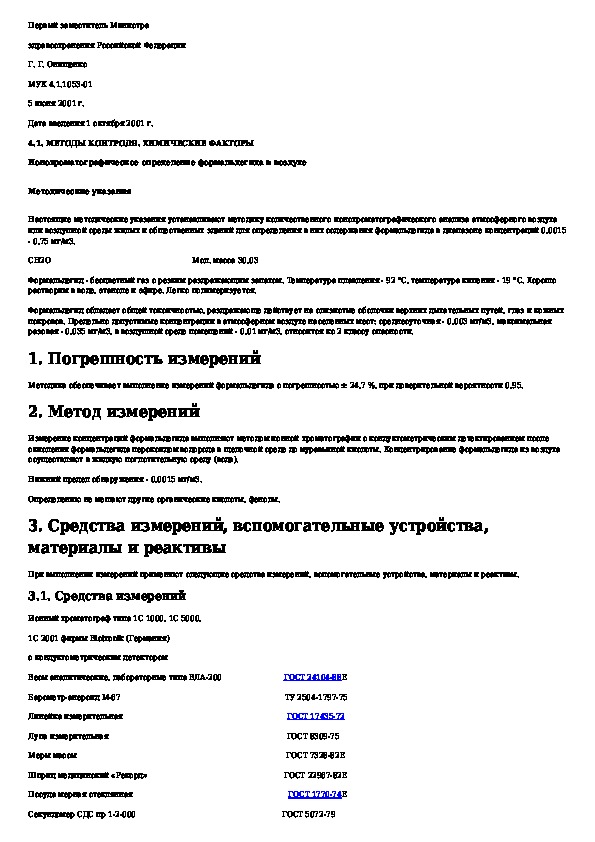 МУК 4.1.1053-01: Ионохроматографическое определение формальдегида в воздухе