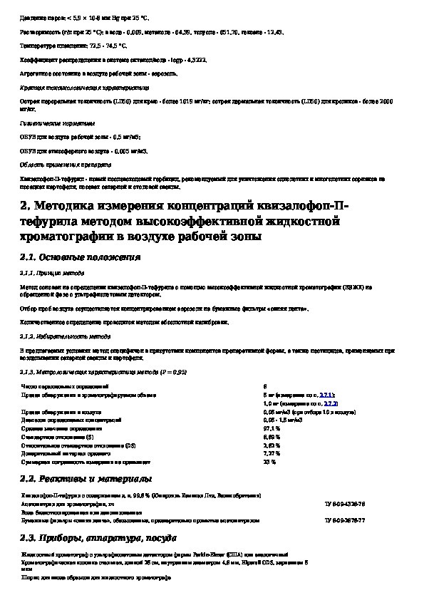 Наша цель состоит в том, чтобы предоставить вам быстрый доступ к содержанию документа Измерение концентраций квизалофоп-П-тефурила в воздухе рабочей зоны методом высокоэффективной жидкостной хроматографии.