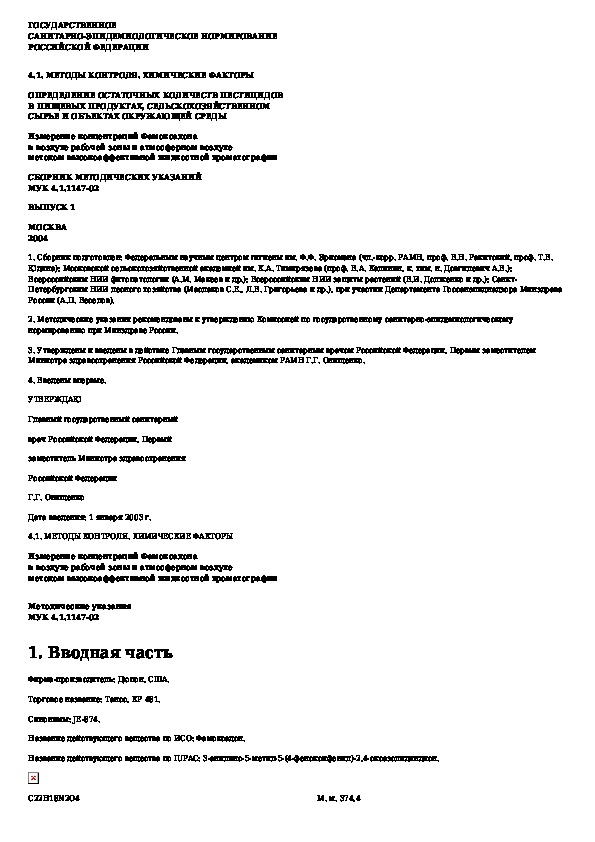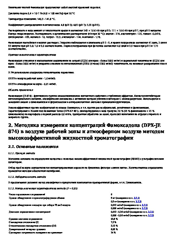 МУК 4.1.1147-02: Измерение концентраций Фамоксадона в воздухе рабочей зоны и атмосферном воздухе методом высокоэффективной жидкостной хроматогр