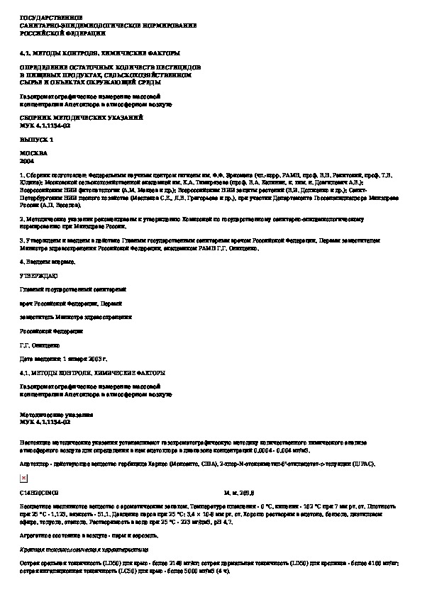 МУК 4.1.1154-02: Газохроматографическое измерение массовой концентрации Ацетохлора в атмосферном воздухе
