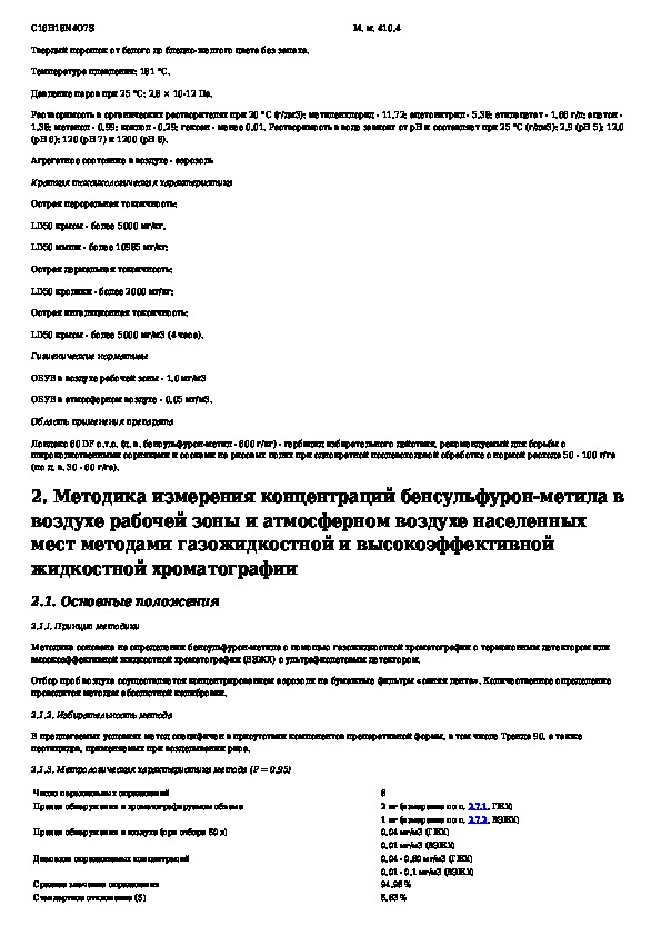 Измерение концентраций бенсульфурон-метила в воздухе рабочей зоны и атмосферном воздухе населенных мест методами газожидкостной