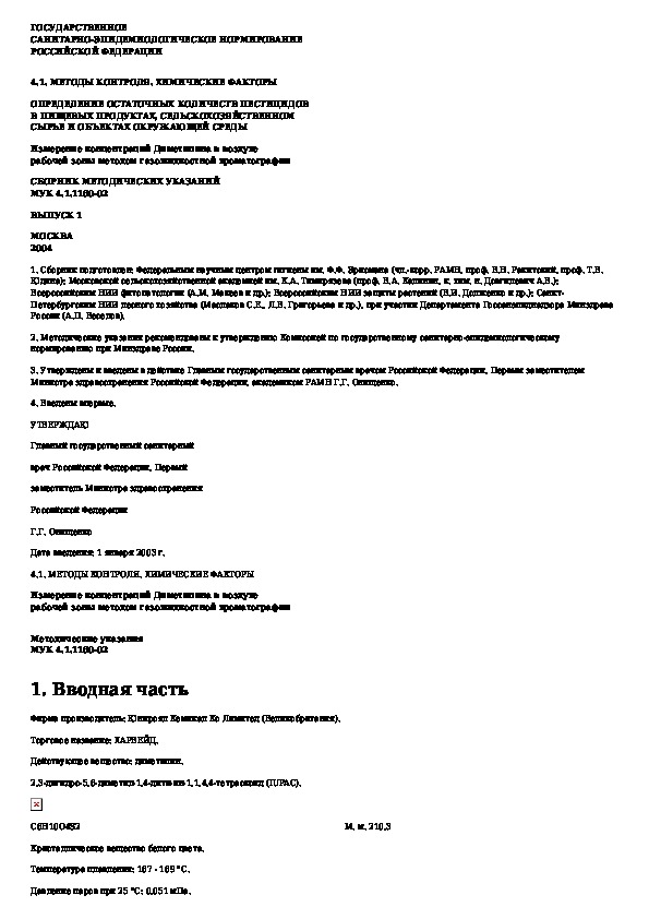 МУК 4.1.1160-02: Измерение концентраций Диметипина в воздухе рабочей зоны методом газожидкостной хроматографии