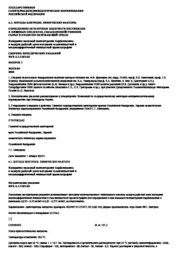 Измерение массовой концентрации Карбендазима в воздухе рабочей зоны методами газожидкостной и высокоэффективной жидкостной хро