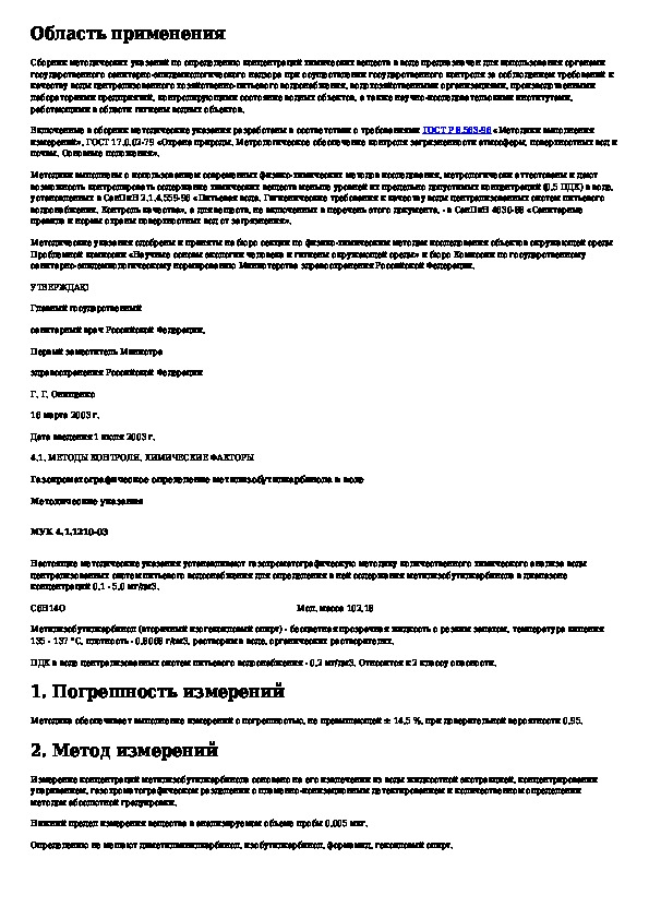 Обозначение: МУК 4.1.1210-03