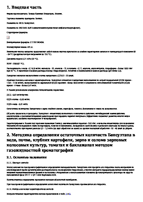 Наша цель состоит в том, чтобы предоставить вам быстрый доступ к содержанию документа Определение остаточных количеств Бенсултапа в воде, почве, клубнях картофеля, зерне и соломе зерновых колосовых культур, томатах и.