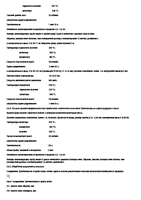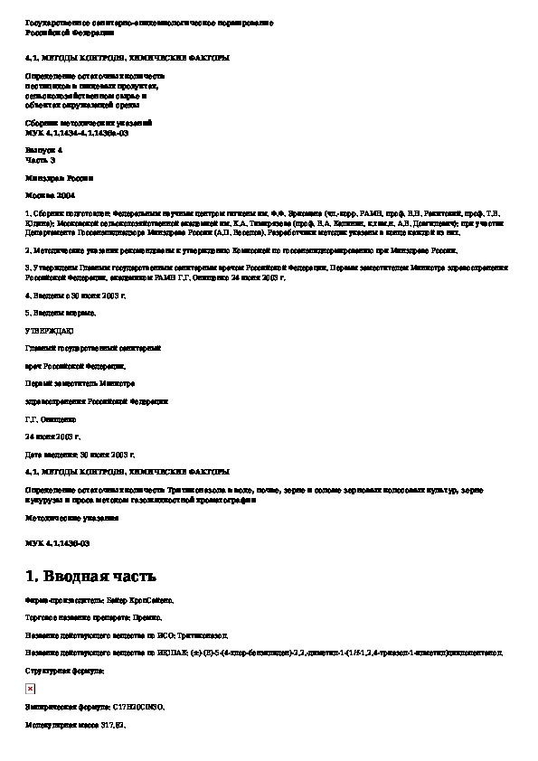 МУК 4.1.1436-03: Определение остаточных количеств Тритиконазола в воде, почве, зерне и соломе зерновых колосовых культур, зерне кукурузы и проса ме