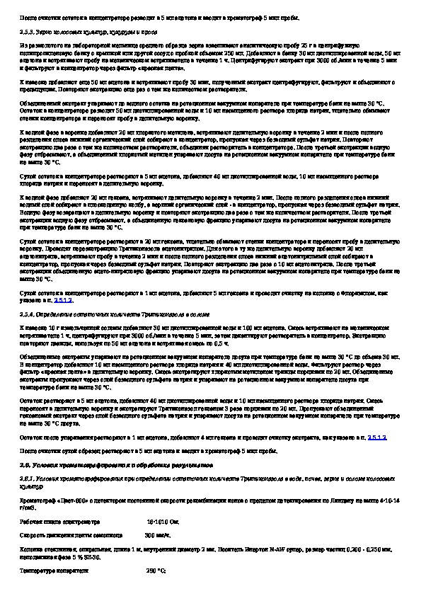 Определение остаточных количеств Тритиконазола в воде, почве, зерне и соломе зерновых колосовых культур, зерне кукурузы и проса ме