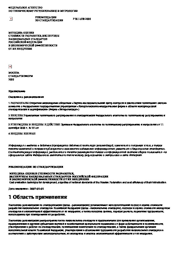 Р 50.1.058-2006: Методика оценки стоимости разработки, экспертизы национальных стандартов Российской Федерации и экономической эффективности от