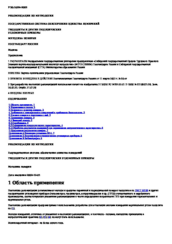 Р 50.2.024-2002: Государственная система обеспечения единства измерений. Теодолиты и другие геодезические угломерные приборы. Методика поверки