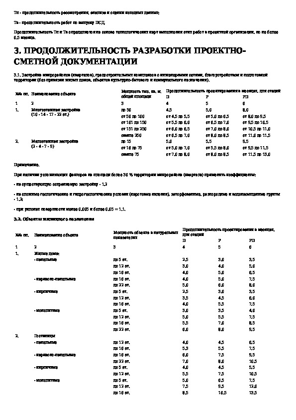 Нормы продолжительности проектирования объектов строительства в городе Москве