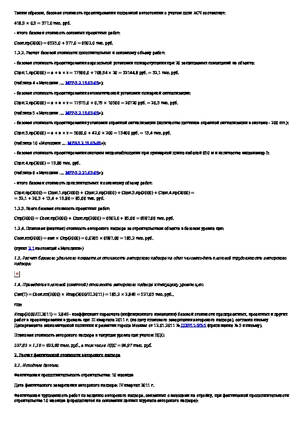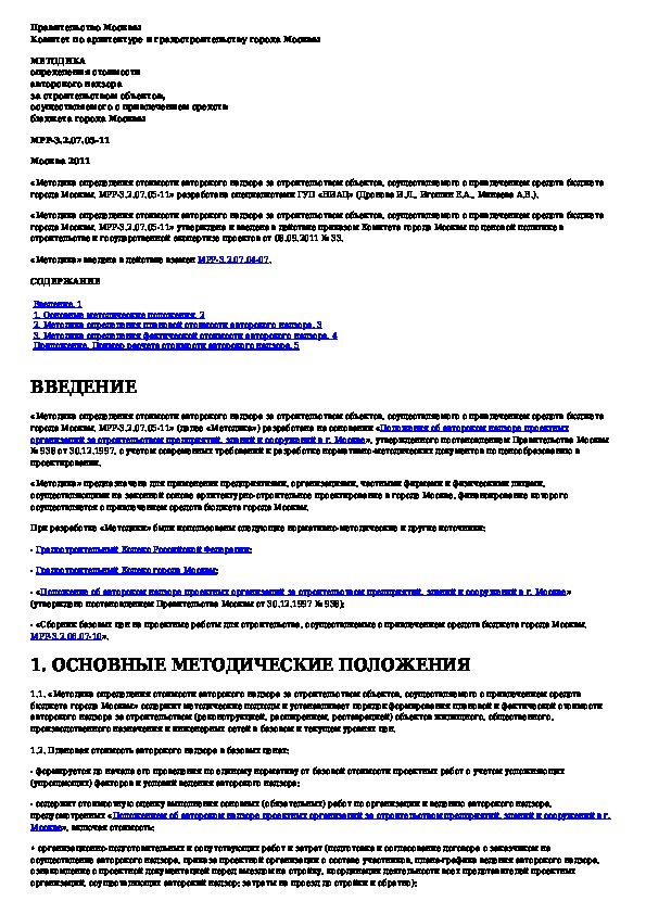 Методика определения стоимости авторского надзора за строительством объектов, осуществляемого с привлечением средств бюджета го