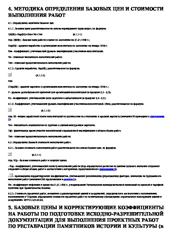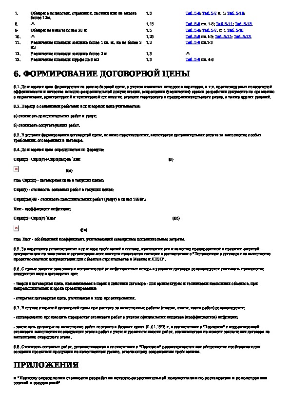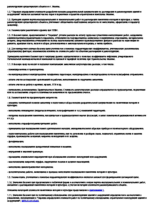 Порядок определения стоимости разработки исходно-разрешительной документации по реставрации и реконструкции зданий и сооружени
