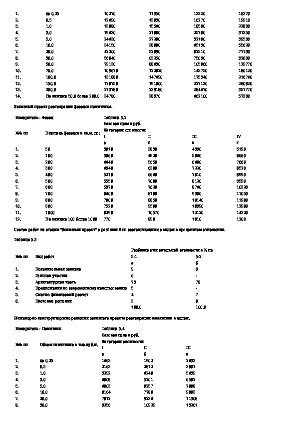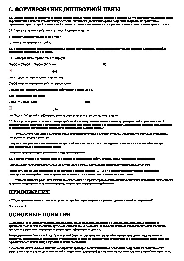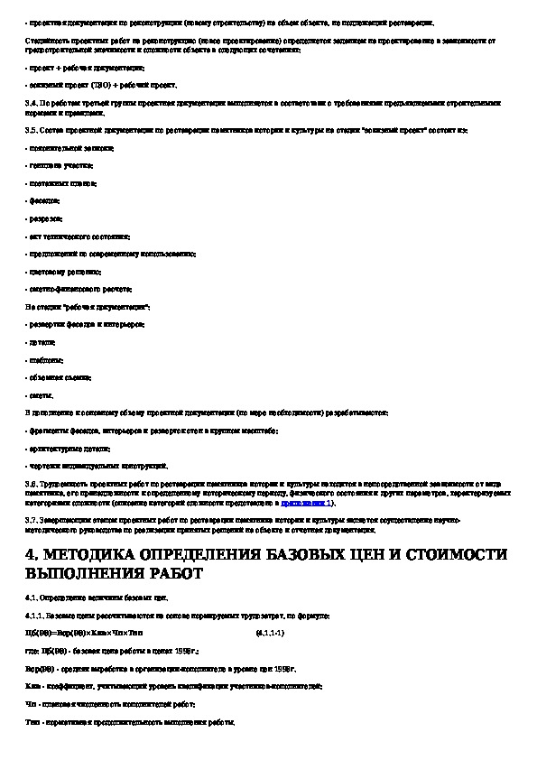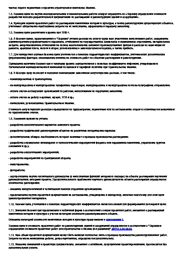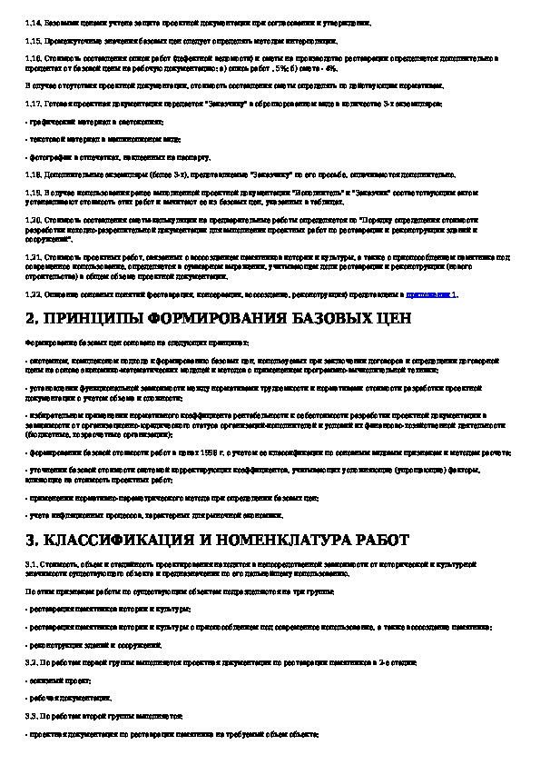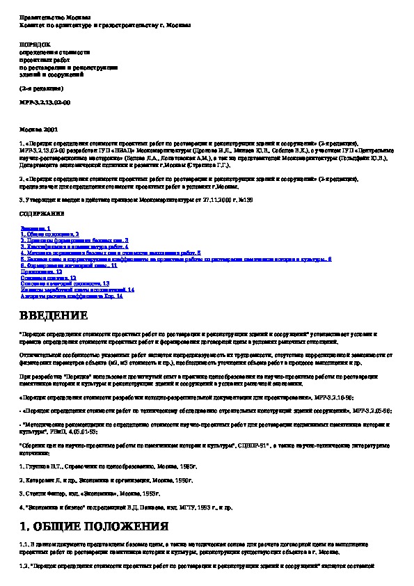 Порядок определения стоимости проектных работ по реставрации и реконструкции зданий и сооружений (2-я редакция)