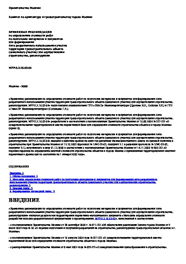 Наша цель состоит в том, чтобы предоставить вам быстрый доступ к содержанию документа Временные рекомендации по определению стоимости работ по подготовке материалов и документов для формирования Акта разрешенного .