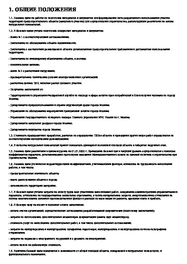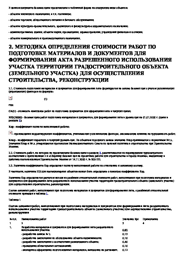 Временные рекомендации по определению стоимости работ по подготовке материалов и документов для формирования Акта разрешенного