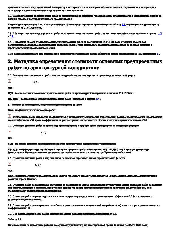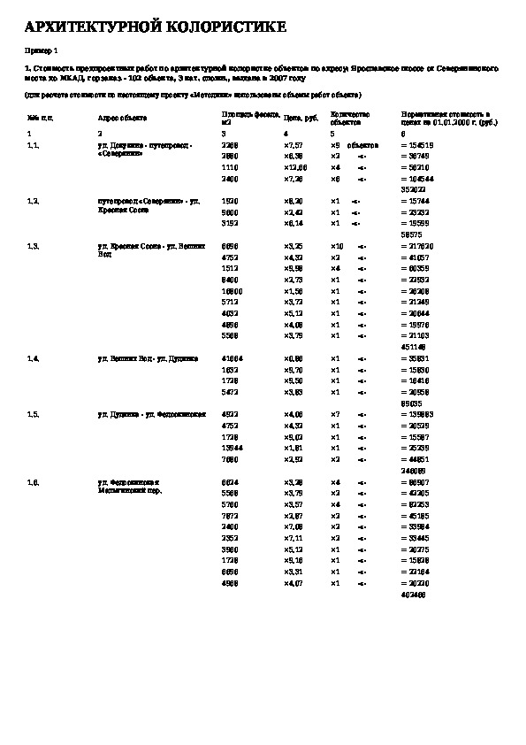 Методика определения стоимости разработки архитектурной колористики объектов строительства в городе Москве