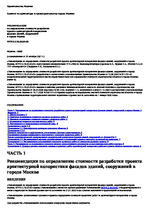 Наша цель состоит в том, чтобы предоставить вам быстрый доступ к содержанию документа Рекомендации по определению стоимости разработки проекта архитектурной колористики фасадов зданий, сооружений в городе Москве.