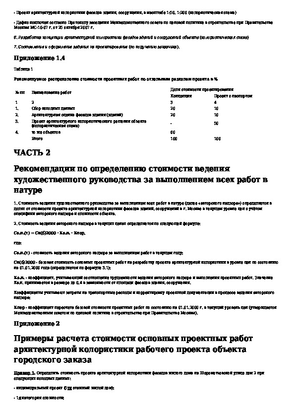 Рекомендации по определению стоимости разработки проекта архитектурной колористики фасадов зданий, сооружений в городе Москве