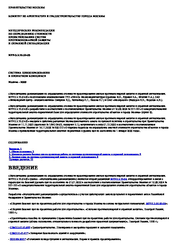 МРР 3.2.19.02-05: Методические рекомендации по определению стоимости проектирования систем противопожарной защиты и охранной сигнализации