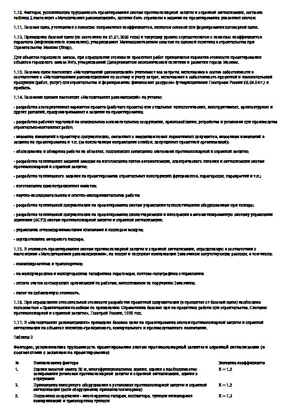 Методические рекомендации по определению стоимости проектирования систем противопожарной защиты и охранной сигнализации
